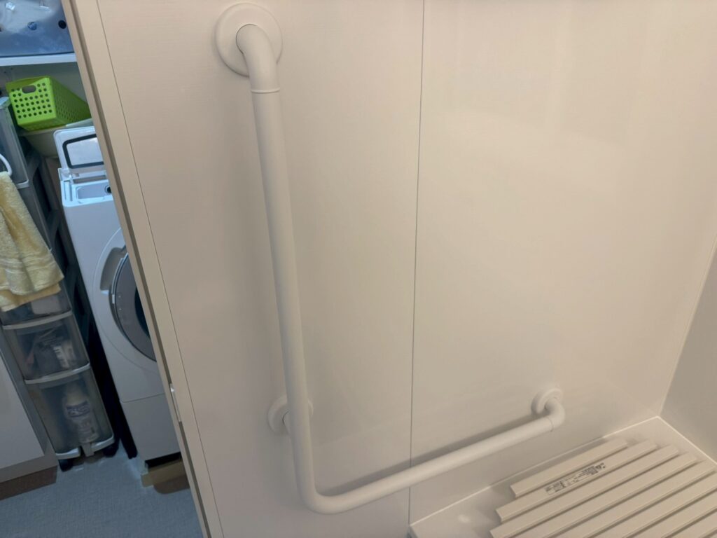 浴槽の出入りや立ち座りが安心して行えるよう、必要な位置に手摺を取り付けました。