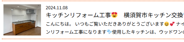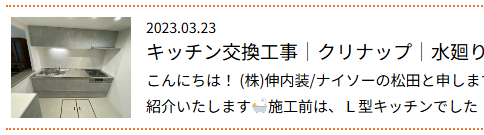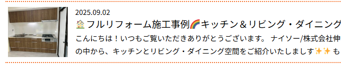 🎵キッチンリフォームで快適な暮らしへ🎵施工事例をまとめてご紹介🏠横須賀市水回り工事 2025年10月21日 お知らせ こんにちは!いつもご覧いただきありがとうございます。 ナイソー/株式会社伸内装の荒井です これまで弊社で施工させていただいたシステムキッチンの事例をいくつかご紹介いたします🌈 お客様のライフスタイルやご要望に合わせ、使いやすさとデザイン性などを重視したプランをご提案しております。 それぞれの現場ごとに、施工前・施工後の写真を掲載しておりますので、ぜひご覧ください🧡🧡 施工事例 ① ■ 施工前 ■ 施工後 クリナップ / ラクエラ 扉カラー:シンシアシリーズ・モカウッド ☝ 詳細はこちらをクリック 施工事例 ② ■ 施工前 ■ 施工後 クリナップ / ラクエラ 扉柄:コンフォート・ダークウォールナット ☝ 詳細はこちらをクリック 施工事例 ③ ■ 施工前 ■ 施工後 ウッドワン / スイージ ☝ 詳細はこちらをクリック 施工事例 ④ ■ 施工前 ■ 施工後 クリナップ / ラクエラ ☝ 詳細はこちらをクリック 今後のリフォームのご参考になれば幸いです🧡 お見積りやご相談もお気軽にお問合せください😊🎵 リフォーム可能箇所 襖/畳/エアコン取付/レンジフード/障子/戸襖/天袋/地袋/カーテン/カーテンレール/ロールスクリーン/床改修/ウッドデッキ/サンルーム/パントリー/収納棚/水廻り/小工事/スプレーコンクリート/タイル/ブロック/外構/壁紙/クロス/クッションフロア/CF/エコカラット/珪藻土/スケルトン/フローリング/フロアタイル/タイルカーペット/キッチンリフォーム/キッチン交換/システムキッチン/店舗改修/店舗解体/店舗リフォーム/店舗内装/雨戸交換/窓まわり/リフォームシャッター/ルーバー雨戸/リフォーム/浴室/浴室換気扇/ユニット/リビング/和室/洋室/玄関/玄関ドア/室内ドア/間取り変更/床暖房/土間/ベランダ・バルコニー/屋上防水/フェンス/寝室/子供部屋/脱衣所/洗面/キッチン/トイレ/お風呂/シャワー/水栓/給湯器/換気扇/雨漏り調査/雨漏り修繕/屋根/外壁/塗装/高圧洗浄/表札/雨戸/戸袋/防犯カメラ/瓦/カーポート/葺き替え/シール/屋根カバー/外壁カバー/etc 内装・リフォーム・水廻り・塗装・屋根工事などに悩んでいましたらお気軽にご相談ください。 ぜひ、フリーダイヤル:0120-855-081 や LINE@をご活用下さい!! 神奈川県横須賀市にあるガイソー横須賀店では、外壁材や屋根材などが見て触って体感できるショールームになっております。 ぜひお気軽にご来店ください!! ご来店予約はこちらから お見積もりは無料です!! 電話、ご来店のお時間が取れない方に、 LINEでのお問いあわせ、ご好評いただいております! 外構工事、エクステリア、外壁塗装、屋根塗装、カバー工法、雨漏り、補修工事、内装工事 すべてガイソー横須賀店にお任せください!! フリーダイヤル:0120-503-081 ショールーム:神奈川県横須賀市三春町3-18 1F 堀ノ内駅すぐ 駐車場あります。 お電話・ご来店・LINE・お問合せお待ちしております。 横須賀市の会社でかなえませんか★ ガイソー横須賀店/株式会社伸内装では、 様々な工事が可能です ガイソー横須賀店 【業務内容】 屋根塗装工事、外壁塗装工事、付帯塗装工事、木部塗装、鉄骨塗装、板金工事、外壁洗浄工事、バイオ高圧洗浄、屋根カバー工事、外壁カバー工事、屋根張り替え工事、屋根葺き替え工事、外構工事、土間工事、ウッドデッキ工事、エクステリア工事などその他工事ご相談ください。 ガイソー横須賀店では、横須賀市を中心に住まいのプロとして、ベストな解決策をご提案させていただきます。家のお困りごとは悩む前にご相談ください!! ★ショールーム★住所:神奈川県横須賀市三春町3-18 1F営業時間:10:00~18:00定休日:水曜・日曜URL:http://www.gaiso-yokosuka.co/【ガイソー横須賀店で検索! 内装リフォーム専門店ナイソー/株式会社 伸内装 内装リフォーム専門店OPEN 【業務内容】 内装工事、リフォーム工事、リノベーション工事、キッチンリフォーム工事、水廻り工事(トイレリフォーム工事、洗面リフォーム工事、バスルーム(お風呂)リフォーム工事、クロス貼替工事、フローリング貼り替え工事、襖貼り替え工事、網戸張替工事、ウッドデッキ工事、外構工事、エクステリア工事などその他ご相談ください。 株式会社伸内装では、横須賀市を中心に住まいのプロとして、ベストな解決策をご提案させていただきます。家のお困りごとは悩む前にご相談ください!! ★ショールーム★ 住所:神奈川県横須賀市三春町1-14営業時間:10:00~18:00定休日:水曜・日曜 URL:http://shinnaisou.com/【伸内装 横須賀で検索!】